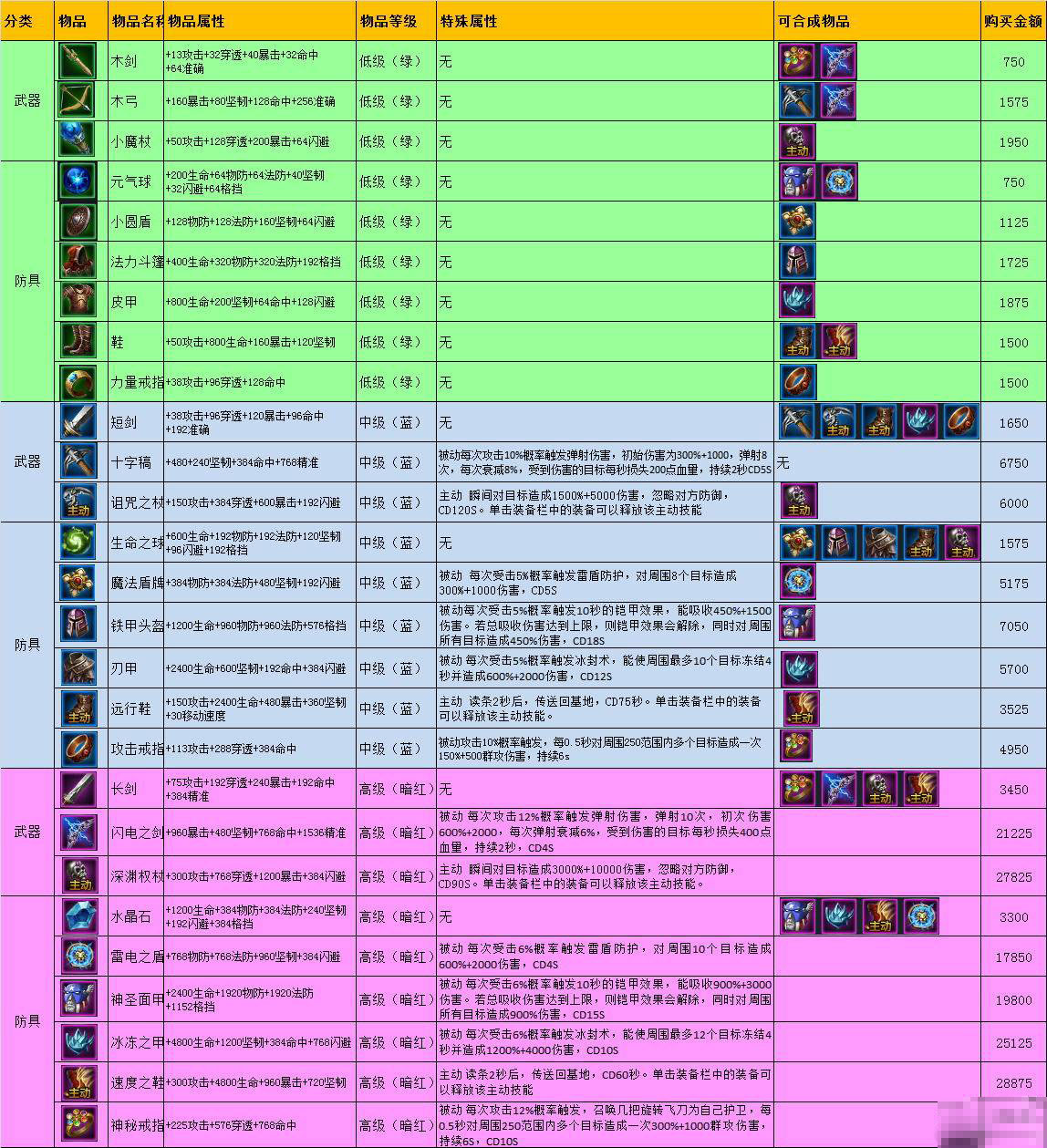 下面是整理的裝備屬性、價(jià)格圖(點(diǎn)擊查看大圖):