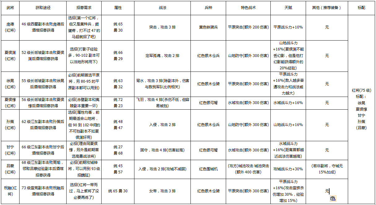 來(lái)源:聚俠網(wǎng) 發(fā)表時(shí)間:2014-08-28 15:49:00在攻城掠地新版武將來(lái)臨之際,小編特意將140級(jí)之前的武將進(jìn)行一次匯總,包括所有武將的招募、屬性、定位等,一起跟著小編看看吧。