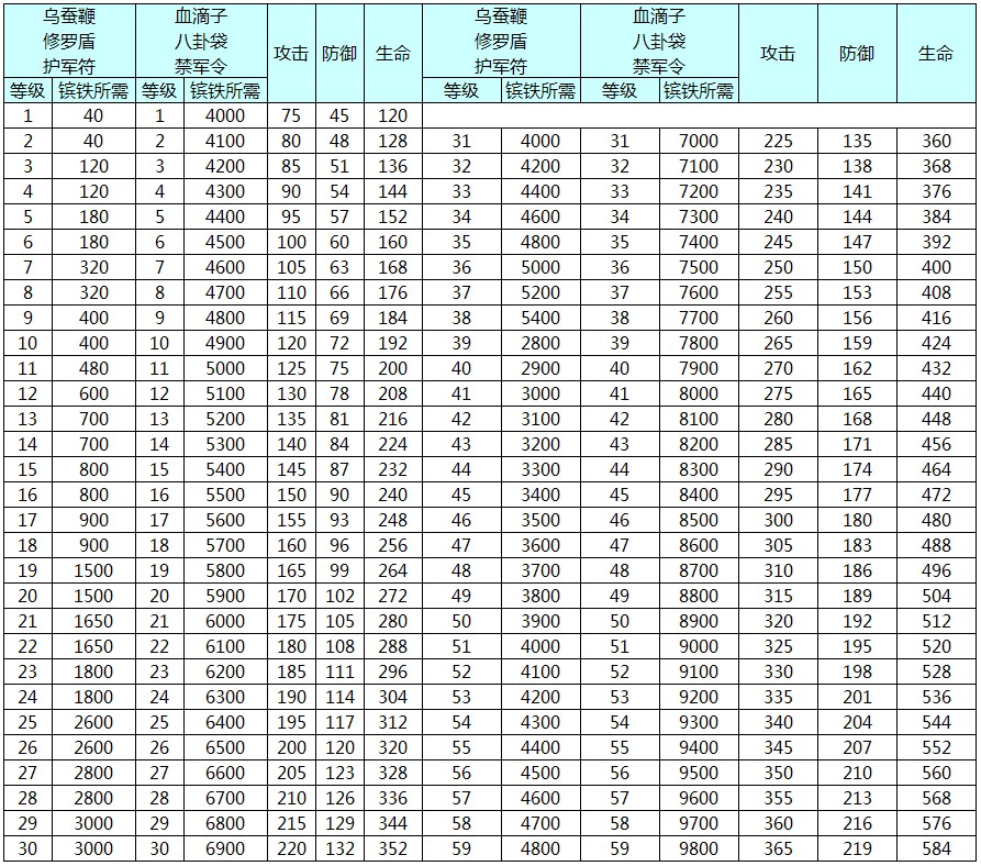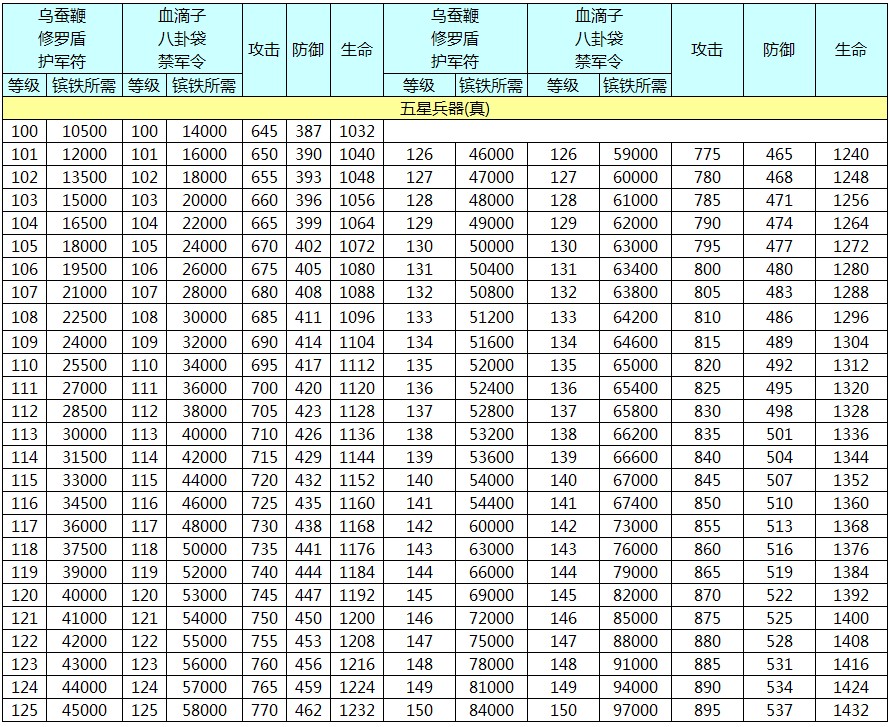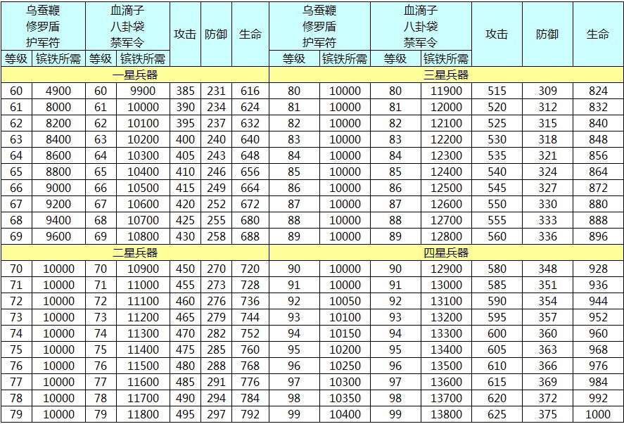 攻城掠地新版兵器屬性數(shù)據(jù)大全
