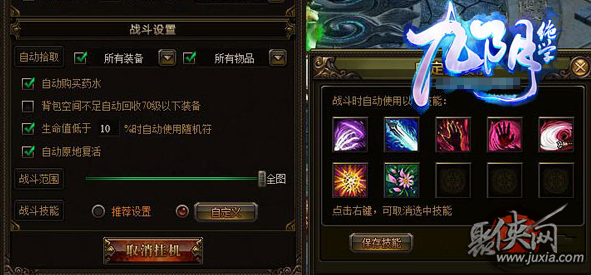 九陰絕學(xué)中,在九龍壁圖標(biāo)邊上,有一個(gè)“掛”字的UI,點(diǎn)擊后就可以進(jìn)入戰(zhàn)斗助手設(shè)置。點(diǎn)擊最下方“自定義”即可設(shè)置掛機(jī)技能。