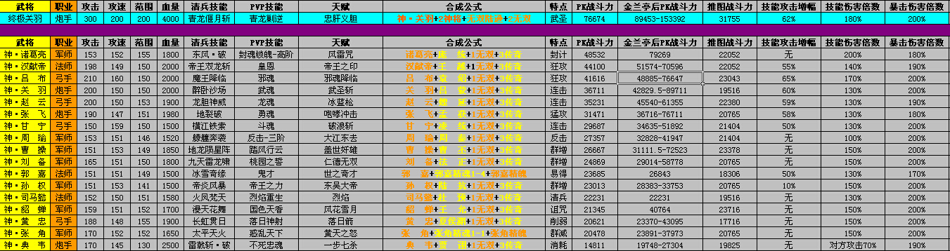塔防三國(guó)志神將數(shù)據(jù)一覽: