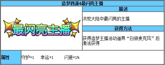 以上就是造夢西游4最閃亮主播的獲得方法及屬性,希望對大家有所幫助!