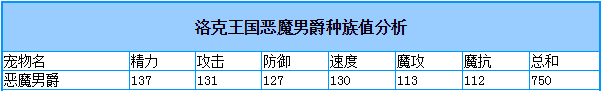 種族總評(píng):從種族值來(lái)看,惡魔男爵的種族值分配的不是很好。不過(guò)決定一只寵物的好壞還得看技能。