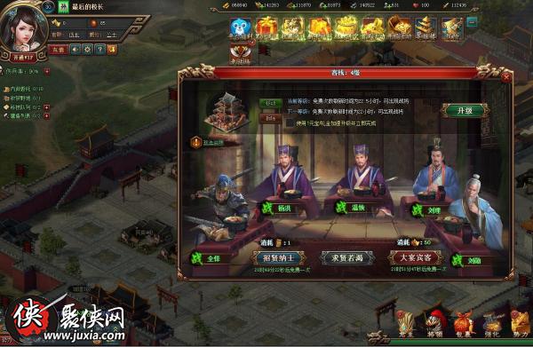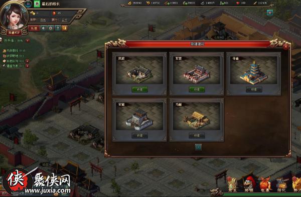 游戲中,玩家可以在領(lǐng)地中進(jìn)行各項(xiàng)建設(shè),內(nèi)城主要是各種功能型建筑,生產(chǎn)黑科技的書(shū)院(提升軍隊(duì)及城池的各項(xiàng)屬性)、擴(kuò)充軍備的軍營(yíng)、招攬人才的客棧等,至于外城則更加偏向于資源型建筑,農(nóng)田、鐵礦、伐木場(chǎng),隨著主公等級(jí)的提升,會(huì)解鎖更多的玩法。