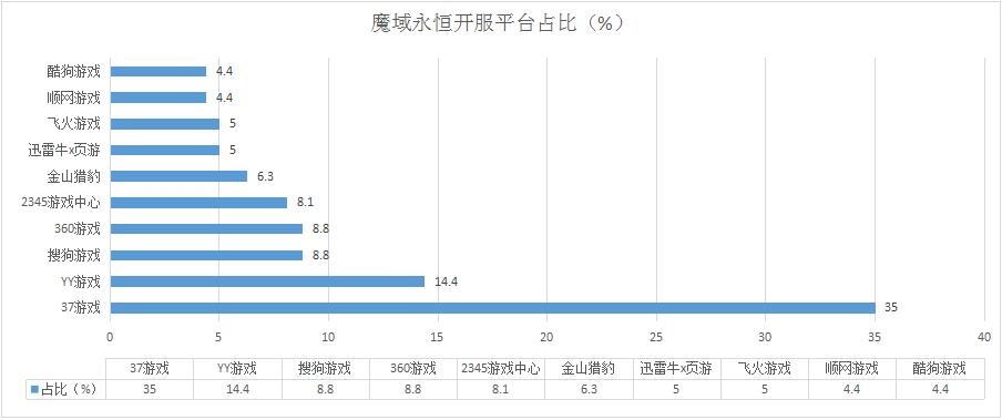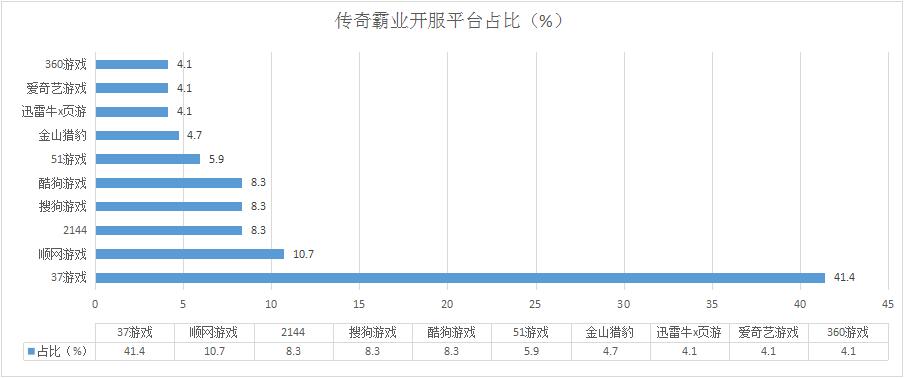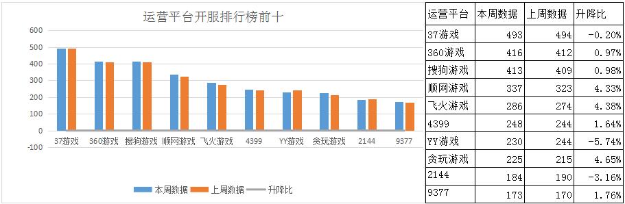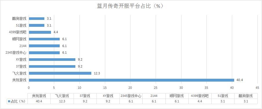 《藍(lán)月傳奇》本周開服形勢穩(wěn)定,各平臺分布占比情況基本未發(fā)生變化,新增分布占比平臺酷狗游戲。