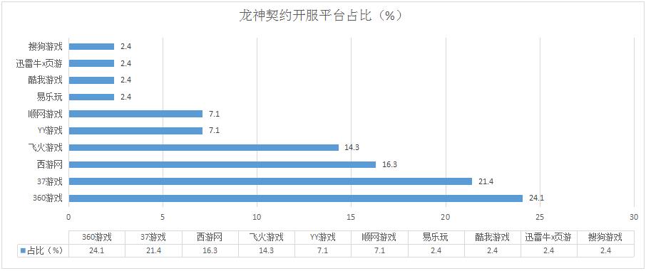 本周《龍神契約》開服總數(shù)略有上漲,整體開服形勢穩(wěn)定。其在易樂玩、酷我游戲、迅雷牛X頁游、搜狗游戲等多家平臺的開服占比穩(wěn)定在1服/天。