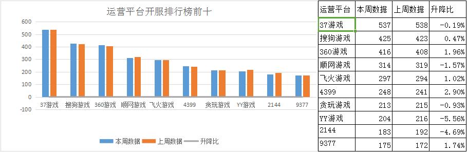 本周各運(yùn)營平臺(tái)主打游戲開服情況與上周相比基本未發(fā)生變化,37游戲?qū)ⅰ督鹧b傳奇》推為平臺(tái)第一主打游戲,開服頻率高達(dá)10服/天;順網(wǎng)游戲?qū)ⅰ镀孥E重生》加入平臺(tái)主打游戲陣容之中,開服頻率保持在2服/天。