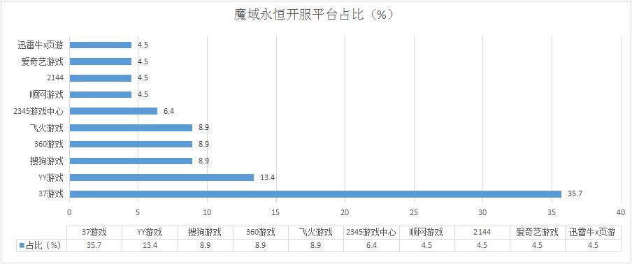本周《魔域永恒》繼續(xù)保持著良好的發(fā)展態(tài)勢,開服總數(shù)增漲2.3%;新增分布占比平臺(tái)順網(wǎng)游戲、愛奇藝游戲,開服頻率皆為1服/天。