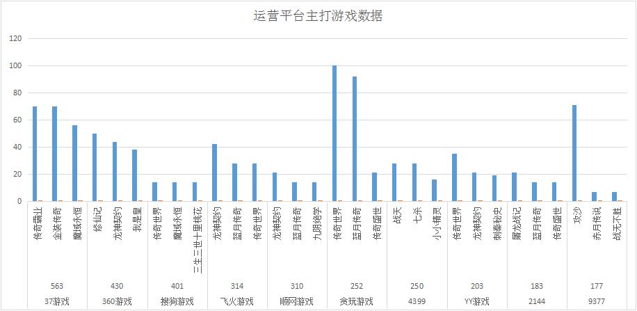 本周各運營平臺主打游戲開服情況較上周變化不大,360游戲?qū)ⅰ缎尴捎洝吠茷槠脚_第一主打游戲,開服頻率達(dá)到了7服/天;此外《我是皇》也晉升為平臺主打游戲,開服頻率穩(wěn)定在5服/天。