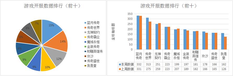 本周榜單游戲整體開服形勢較為穩(wěn)定,與上周相比未發(fā)生太大變化?!段沂腔省沸律习?,開服總數(shù)大漲28.6%,位列榜單第十;此外《傳奇世界》本周漲幅也較為明顯,與上周相比增漲了13.8%,坐穩(wěn)榜單第二的位置。