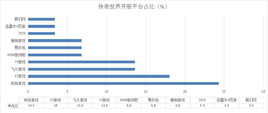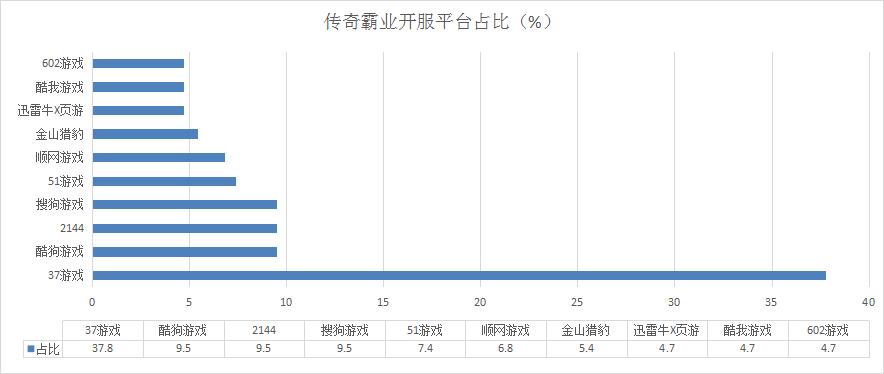 本周《傳奇霸業(yè)》開(kāi)服總數(shù)較上周縮減4.2%,但其在各平臺(tái)的分布占比情況基本未發(fā)生變化,新增分布占比平臺(tái)602游戲、迅雷牛X頁(yè)游。