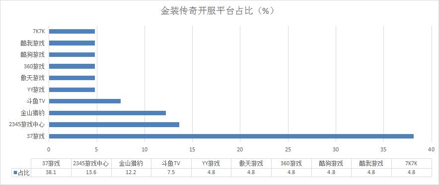 《金裝傳奇》本周開(kāi)服總數(shù)與上周持平,新增分布占比平臺(tái)360游戲,開(kāi)服頻率1服/天。