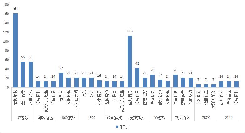 本周各運營平臺主打游戲開服與上周相比變化不大,360游戲?qū)ⅰ短珮O崛起》推為平臺主打游戲,開服頻率3服/天;YY游戲則將《武動乾坤》加入主打游戲之列,開服頻率保持在2服/天。