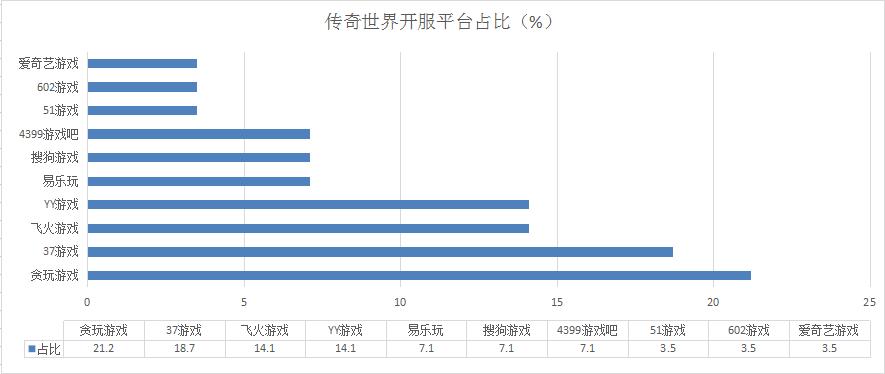 《傳奇世界》本周開服總數(shù)較上周有所減少,但其在各平臺的分布占比情況仍較為穩(wěn)定,51游戲等多家一線平臺的開服頻率保持在1服/天。