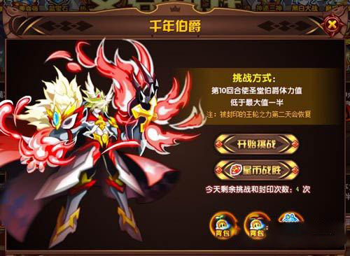 千年伯爵,挑戰(zhàn)方式第10回合使圣堂伯爵體力值低于最大值一半。