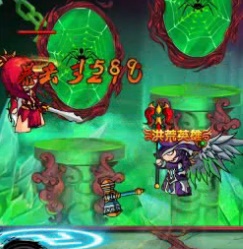 悟空升龍斬可以把boss挑上來然后攻擊,唐僧水魔爆,沙僧對(duì)墻角放娃娃然后木魔舞,白龍雷魔決,八戒土魔刺。注意,要站在第一高臺(tái)上。這里可以無視黃綠蜘蛛的攻擊。boss放自己專有的技能要二段跳。