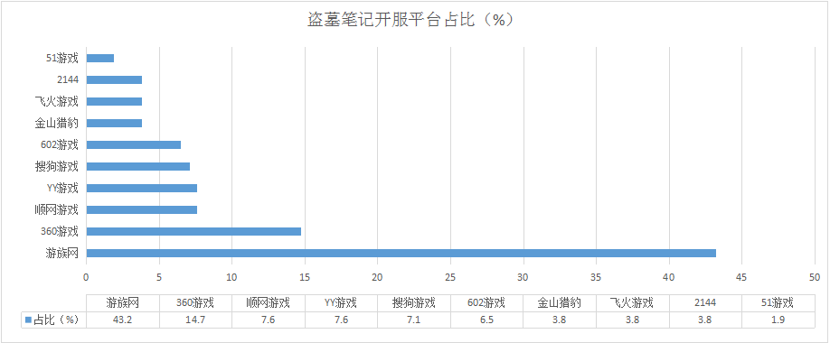 《盜墓筆記》本周開服總數(shù)較上周大漲20.2%,游族網(wǎng)的開服占比回升至43.2%。