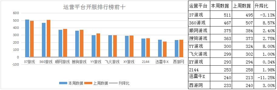 在《藍(lán)月傳奇》開服前十的平臺(tái)中,37游戲增開服務(wù)器數(shù)量的幅度是最大的,達(dá)到了10.3%;而上周排行第九第十的9377和YY游戲則跌出了榜單,將位置讓給了602游戲和酷狗游戲。