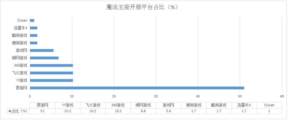 西游網(wǎng)進(jìn)一步稀釋在《魔法王座》中的開服比例,降至51%,可見其他中小平臺(tái)也在逐步的加入到《魔法王座》的市場(chǎng)爭(zhēng)奪中來(lái)。