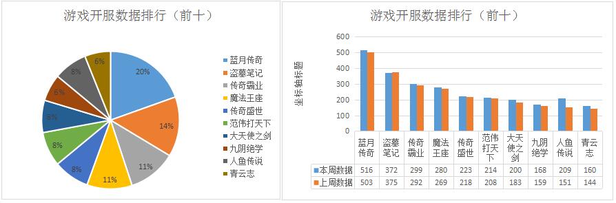 本周網(wǎng)頁游戲開服排行前三游戲:《藍(lán)月傳奇》、《盜墓筆記》、《傳奇霸業(yè)》;《傳奇霸業(yè)》本周擊敗《魔法王座》重回開服前三之列;本周一線平臺(tái)共計(jì)開服6027組,其中上榜游戲共開服2640組,占一線平臺(tái)開服總數(shù)的43.8%;榜單前三游戲共開服1187組,占榜單開服總數(shù)的44.9%。