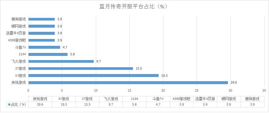 本周《藍(lán)月傳奇》開服態(tài)勢(shì)穩(wěn)定,其在貪玩游戲的開服占比略有上升,新增分布占比平臺(tái)4399,迅雷牛X頁游。