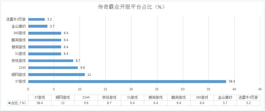 本周《傳奇霸業(yè)》繼續(xù)保持著穩(wěn)定的開服態(tài)勢(shì),回歸榜單前三,其在各平臺(tái)的開服均未發(fā)生顯著變化,未新增分布占比平臺(tái)。