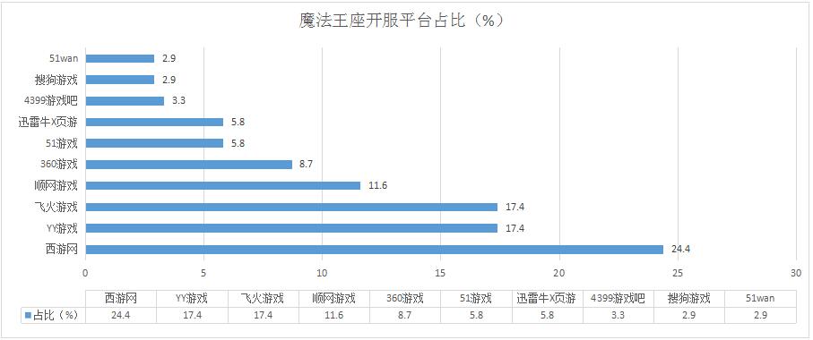 《魔法王座》本周開服數(shù)略有下跌,其在西游網(wǎng)的開服占比被進(jìn)一步稀釋至26.2%,日均開服頻率也減少到了9服/天;新增分布占比平臺(tái)酷狗游戲。