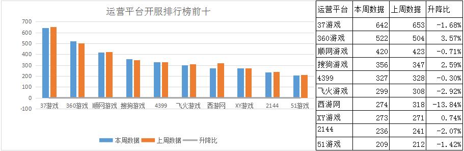 《傳奇霸業(yè)》本周開(kāi)服總數(shù)下降了8%,其在37游戲的開(kāi)服頻率下調(diào)至10服/天,多個(gè)平臺(tái)的開(kāi)服占比達(dá)到7.1%;新增分布占比平臺(tái)迅雷牛X頁(yè)游、愛(ài)奇藝游戲。