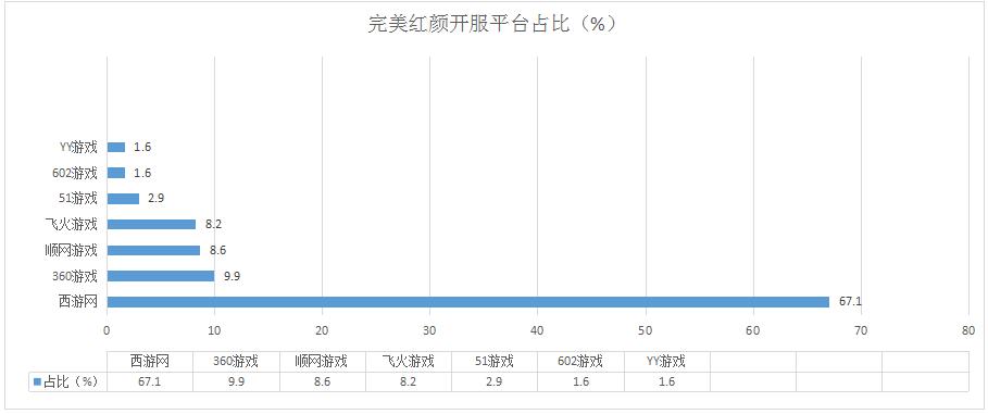 本周《完美紅顏》新入駐602游戲和YY游戲兩家一線平臺(tái),開(kāi)服總數(shù)有所上漲,其在西游網(wǎng)的開(kāi)服占比也隨之被稀釋至67.1%。