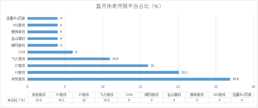 本周《藍(lán)月傳奇》開(kāi)服數(shù)較上周有所下降,但各平臺(tái)開(kāi)服占比未發(fā)生顯著變化;新增分布占比平臺(tái)迅雷牛X頁(yè)游。