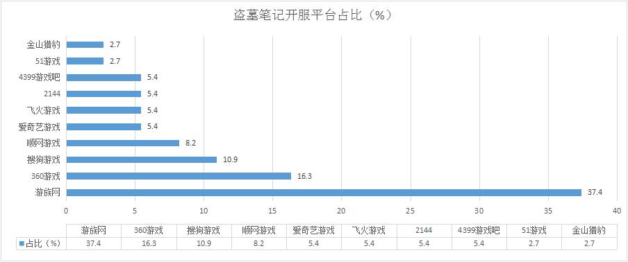 本周《盜墓筆記》開(kāi)服總數(shù)較上周同樣有所下降,但整體開(kāi)服形勢(shì)穩(wěn)定;新增分布占比平臺(tái)金山獵豹。