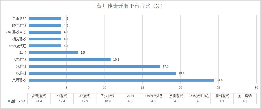 本周《藍(lán)月傳奇》開服態(tài)勢(shì)穩(wěn)定,各平臺(tái)開服占比均未發(fā)生明顯變化;新增分布占比平臺(tái)搜狗游戲、金山獵豹。