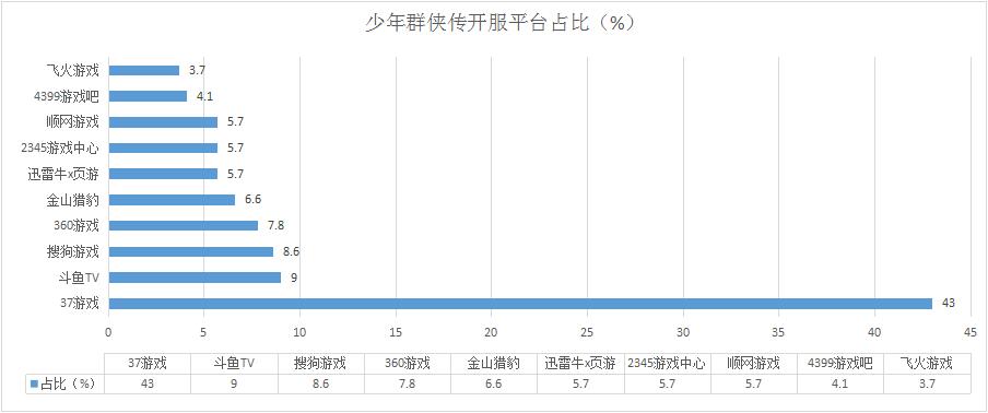 本周《少年群俠傳》開服數(shù)增漲7.4%,其在各平臺(tái)分布占比情況也較為穩(wěn)定,未新增分布占比平臺(tái)。