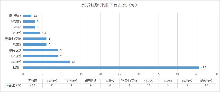 本周《完美紅顏》開服情況依舊較為穩(wěn)定,其在西游網(wǎng)的開服總數(shù)進(jìn)一步減少,而在其他各個(gè)平臺(tái)的開服占比略有波動(dòng),變化不大。