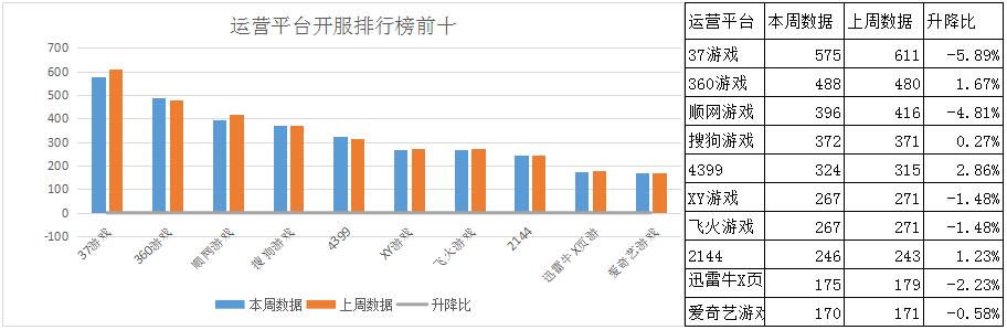 因本周涵蓋春節(jié),各平臺(tái)均維持之前的開(kāi)服策略,因此各項(xiàng)數(shù)據(jù)并未發(fā)生顯著變化;37游戲調(diào)整主打游戲《少年群俠傳》日均開(kāi)服頻率為12服/天,開(kāi)服占比15%。