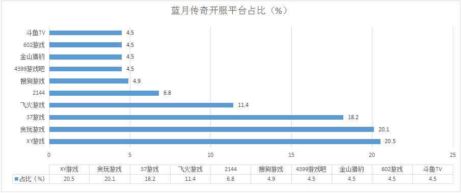 《藍(lán)月傳奇》本周開服數(shù)增漲了1.9%,各平臺分布占比也較為穩(wěn)定;新增分布占比平臺搜狗游戲、602游戲。