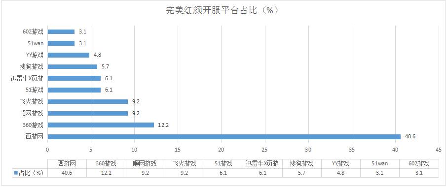 本周《完美紅顏》開服數(shù)較上周增漲9.1%,各平臺開服占比基本未發(fā)生改變。新增分布占比平臺602游戲,開服頻率1服/天。
