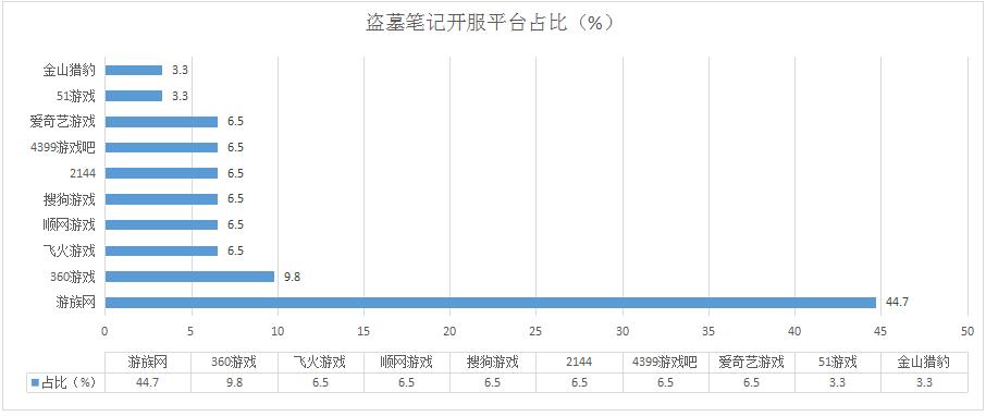 《盜墓筆記》本周開服繼續(xù)保持穩(wěn)定,其在游族網(wǎng)開服占比有所減少,但仍接近半數(shù),其余平臺開服占比未發(fā)生明顯變化。未有新增分布占比平臺。