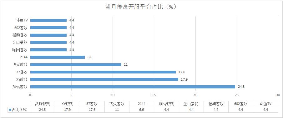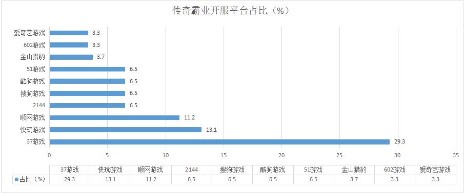 《傳奇霸業(yè)》本周開服數(shù)同樣有所滑落,但各平臺分布占比基本未發(fā)生變化;其在602游戲、愛奇藝游戲等多個平臺的開服頻率為1服/天。