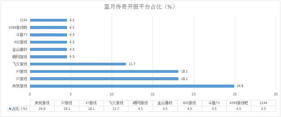 本周《藍(lán)月傳奇》開(kāi)服總數(shù)略有下跌,但整體形勢(shì)保持穩(wěn)定;新增分布占比平臺(tái)搜狗游戲,開(kāi)服頻率為2服/天。