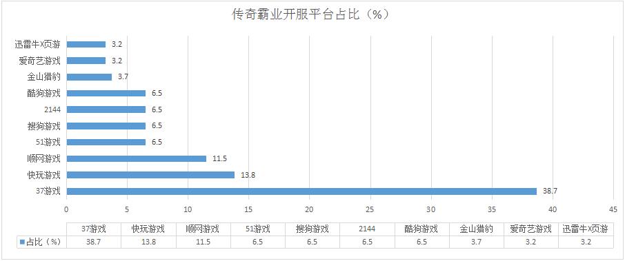 《傳奇霸業(yè)》本周開(kāi)服數(shù)同樣有所滑落,但各平臺(tái)分布占比基本未發(fā)生變化;其在602游戲、愛(ài)奇藝游戲等多個(gè)平臺(tái)的開(kāi)服頻率為1服/天。