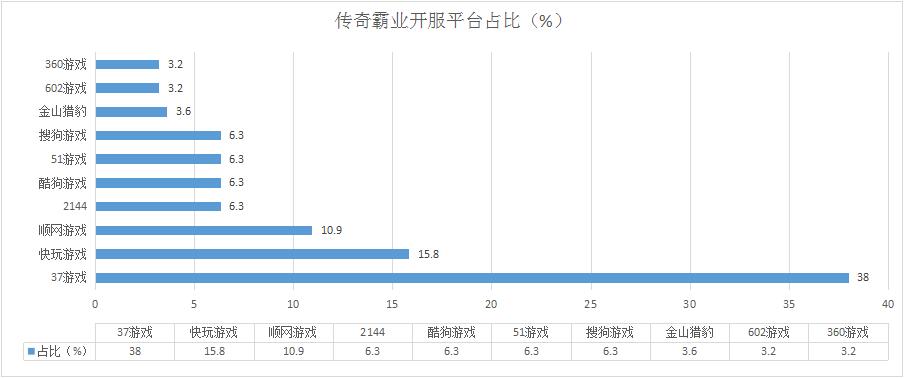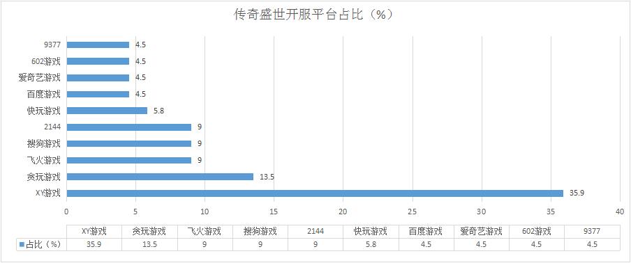 《傳奇霸業(yè)》本周開服趨勢繼續(xù)保持穩(wěn)定,新增分布占比平臺迅雷牛X頁游。