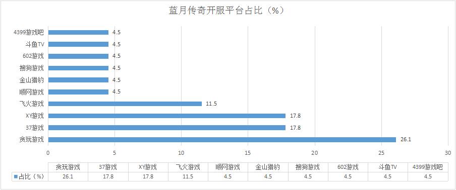 本周《藍月傳奇》開服穩(wěn)定,各平臺開服占比也基本與上周一致。新增分布占比平臺4399,日均開服2服/天。