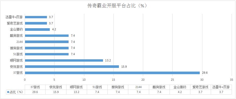 本周《傳奇霸業(yè)》開服稍有減少,但整體趨勢仍保持穩(wěn)定。其在37游戲開服占比減少9.5%。