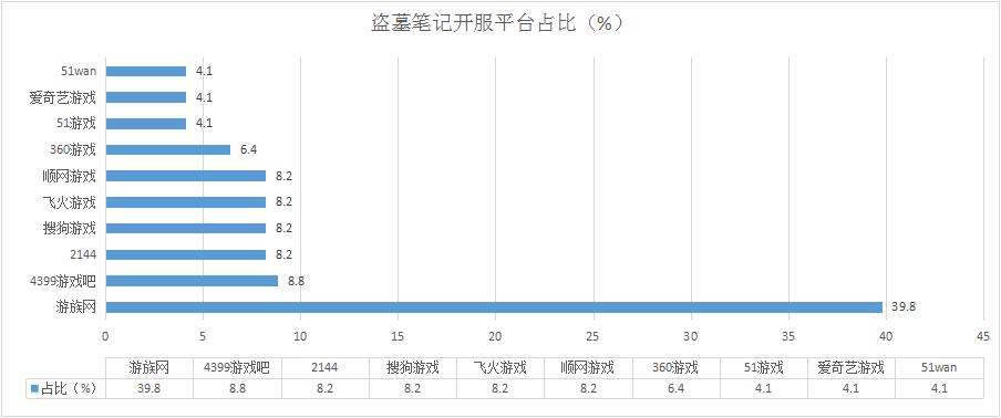 《盜墓筆記》本周開服穩(wěn)定,各平臺開服情況均未發(fā)生顯著變化,新增分布占比平臺51游戲、51wan,開服頻率均為1服/天。