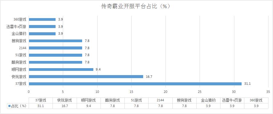 《傳奇霸業(yè)》本周開服總數(shù)減少了3.1%,但各平臺(tái)分布占比情況并未發(fā)生太大變化;新增分布占比平臺(tái)360游戲。