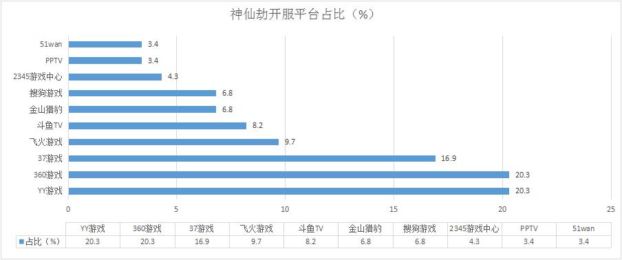 《神仙劫》本周開服總數(shù)微漲1.8%,發(fā)展態(tài)勢穩(wěn)定;新增分布占比平臺(tái)2345游戲中心、PPTV。
