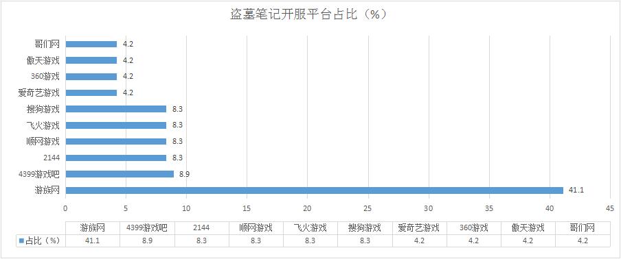 本周《盜墓筆記》開服形勢相對穩(wěn)定,各平臺(tái)分布占比情況基本未發(fā)生變化;其在多個(gè)平臺(tái)的開服頻率維持在1服/天。