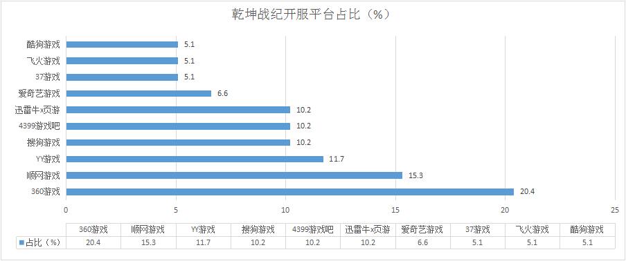 《乾坤戰(zhàn)紀(jì)》本周開(kāi)服數(shù)略有下降,但整體開(kāi)服形勢(shì)穩(wěn)定,新增分布占比平臺(tái)飛火游戲,開(kāi)服頻率穩(wěn)定在1服/天。