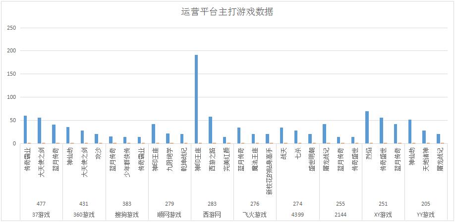 本周西游網(wǎng)繼續(xù)開啟燒錢模式,新推主打游戲西游之路,在各大媒體上投放了廣告,并請來了林志玲作為代言人,開服占比達(dá)到了20.6%,大干一番的雄心可見一斑。與此同時,主推游戲神印王座仍舊火熱,開服數(shù)也增加了30組,助推西游網(wǎng)一舉拿下周開服排行榜第五的位置,可謂功不可沒。此外,360游戲《攻沙》新晉為主打游戲,日均開服頻率為3服/天。飛火游戲《新校花的貼身高手》同樣晉升為平臺主打游戲,開服占比7.6%。XY游戲則延續(xù)之前以“傳奇”類游戲為主要運(yùn)營策略,其開服分布基本未發(fā)生改變。